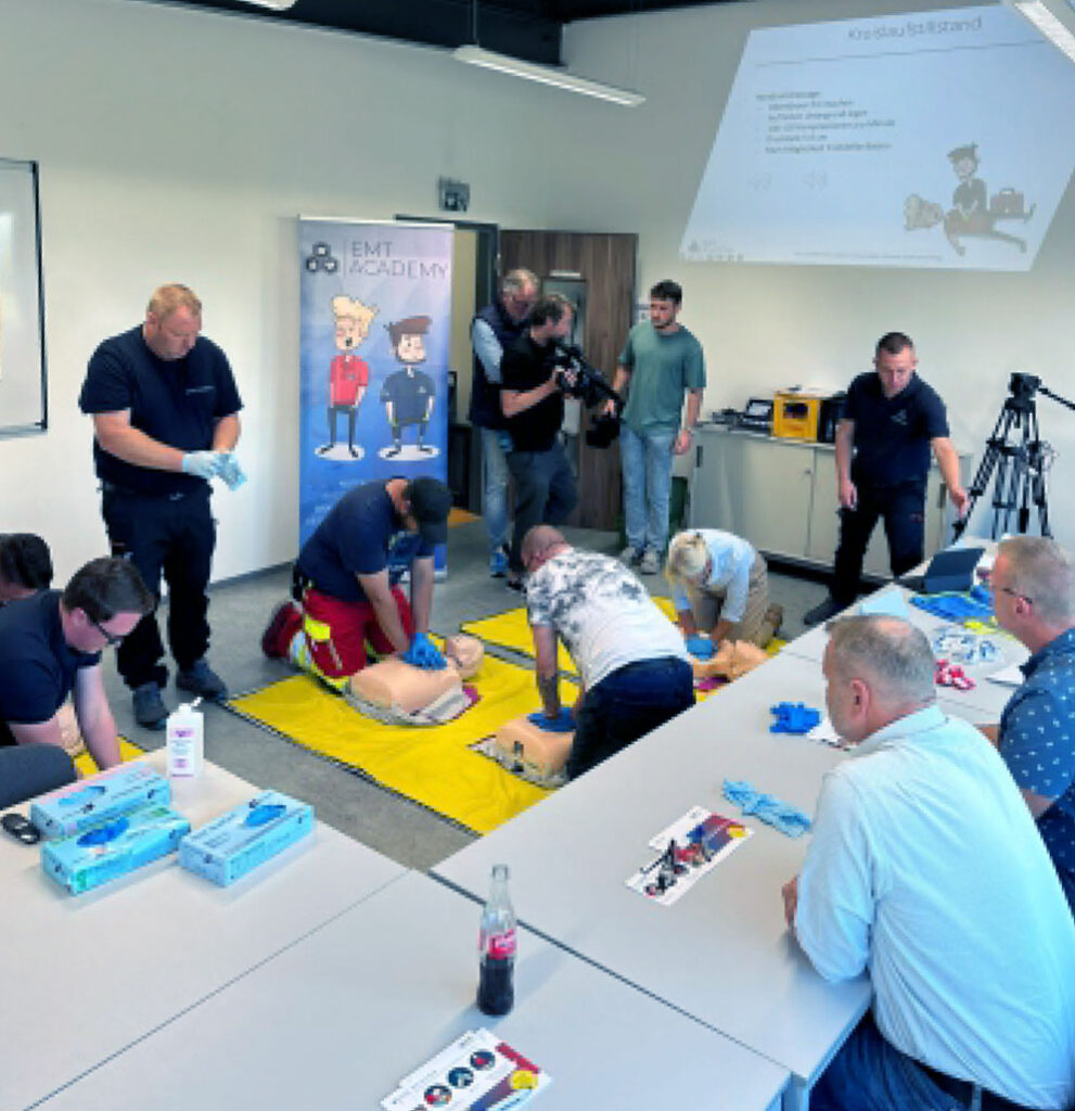 mit einem theoretischen und praktischen Teil. Jeder Teilnehmer erhält eine Ersthelfer Ernennungsurkunde.